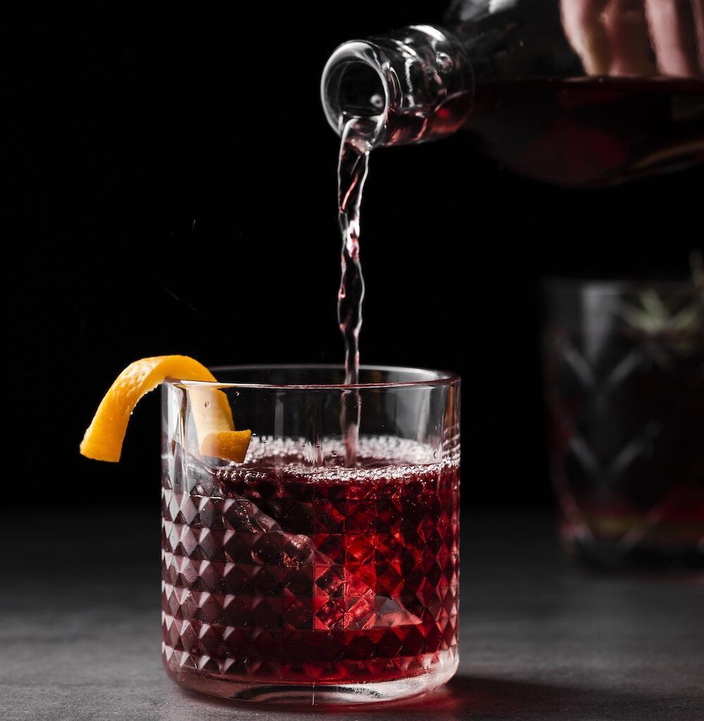 Alcool distillato di ginepro, vermouth rosso e bitter.